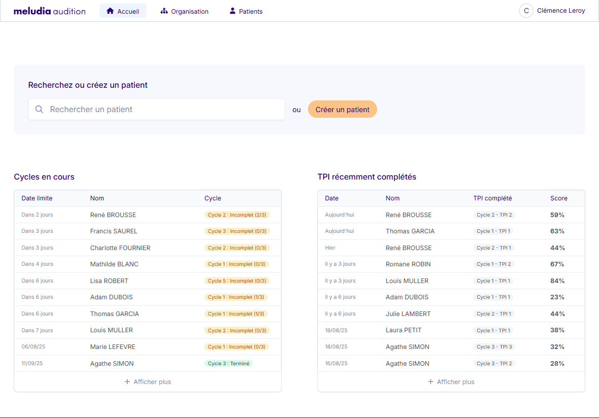 L’accès aux résultats audiométriques et cognitifs des TPIs se font via la plateforme.