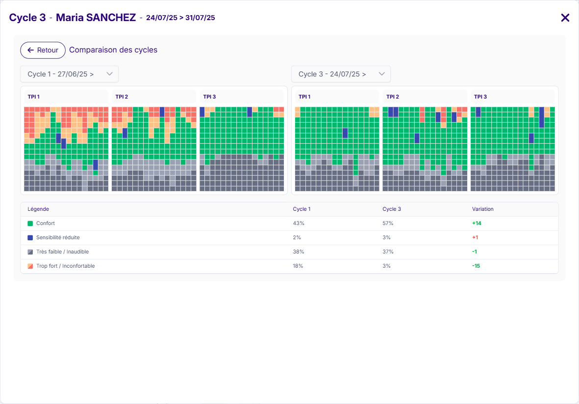 💡À l’issue du second cycle, si de nouveaux réglages sont effectués, le professionnel peut prescrire un nouveau cycle