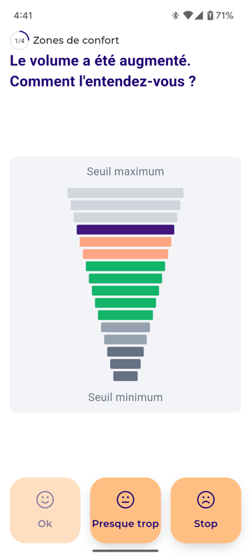 Il s’appuie sur de courtes séquences musicales, spécialement calibrées par meludia audition™, pour proposer une approche écologique avec des sons réels, harmoniques, proches des situations sonores du quotidien, permettant d’objectiver la perception des intensités dans la vie réelle.